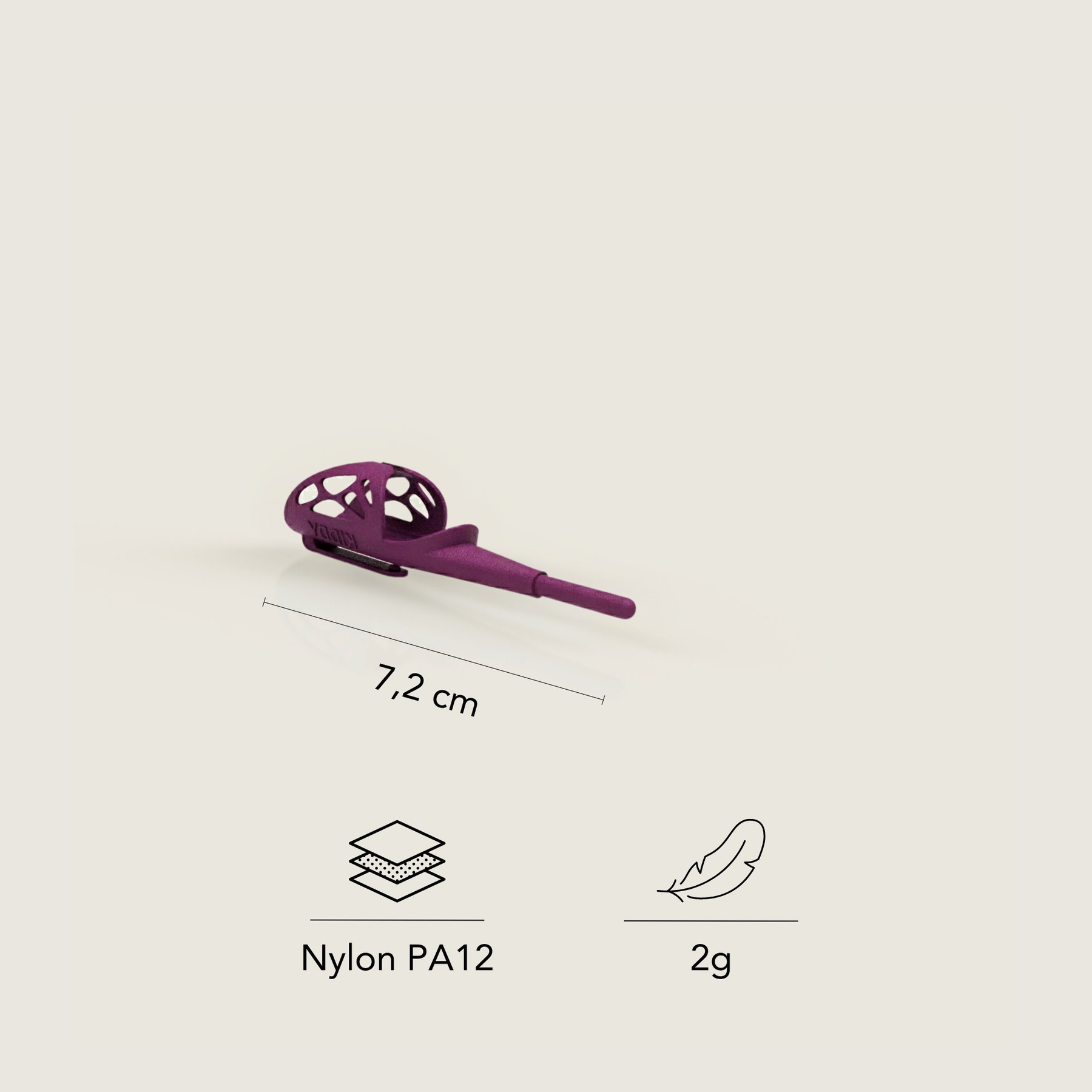Der Bookhoover® wird mittels innovativer 3D-Drucktechnik, dem Multi-Jet-Fusion Verfahren, hergestellt. So lässt sich sein besonderes filigranes Design sowie die flexible Fingerhalterung aus nur einem Material abbilden. Zudem lässt sich so ein völlig neues haptisches Produkterlebnis kreieren.