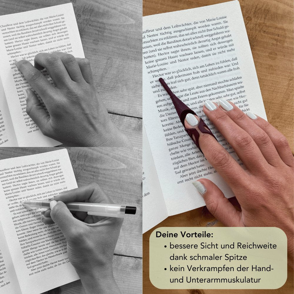 Der ergonomische Fingeraufsatz für mehr Fokus, Tempo und Konzentration - damit das Lesen besser läuft.